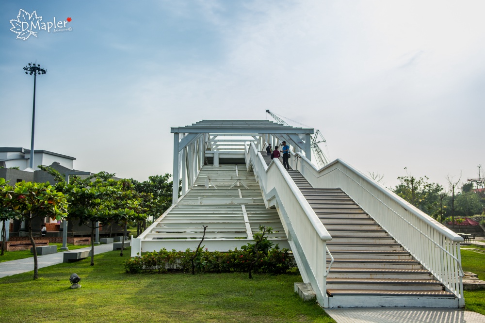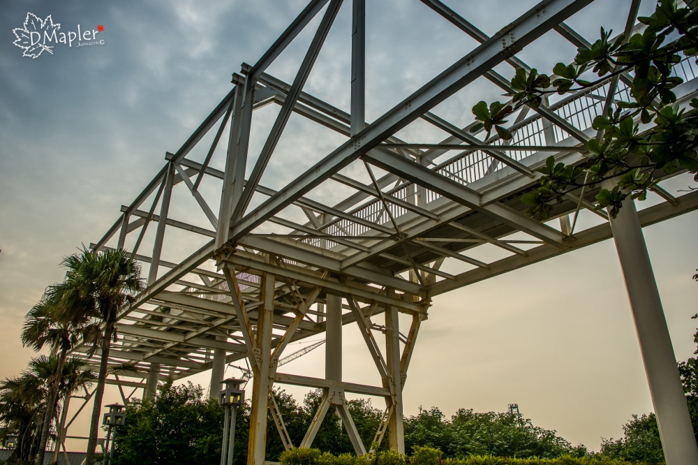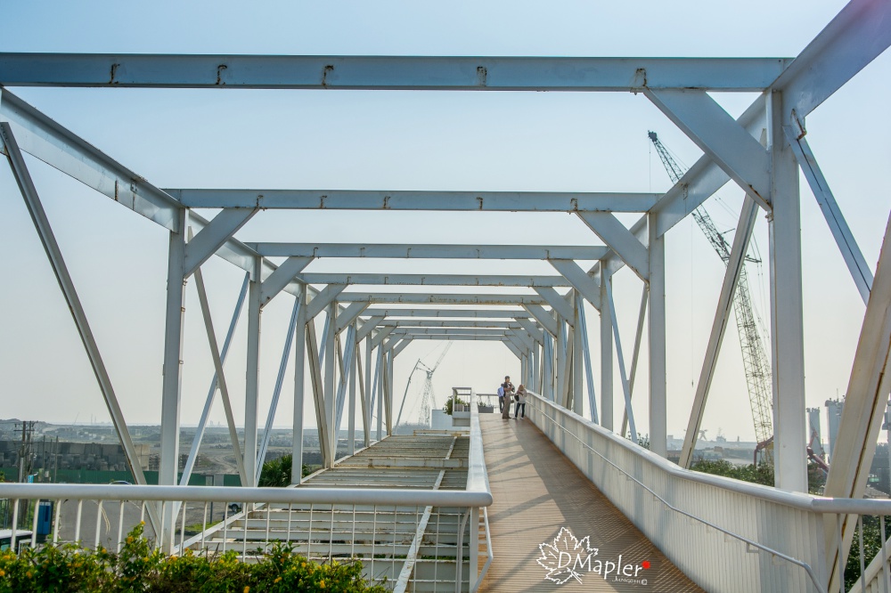 在天空步道上可以遙望高雄貨櫃碼頭,更是觀賞夕陽的好地方。