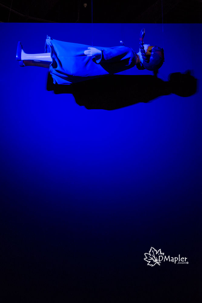藍色的布幕帶出了天空之城女主角 希達 從空中飄落的場景,這部天空之城是小編我最喜愛的一部動畫,漂浮在空中的神秘城堡,勾引出小編我心中許多的夢,經常的遙望天空的雲,是否一樣有個拉普達。