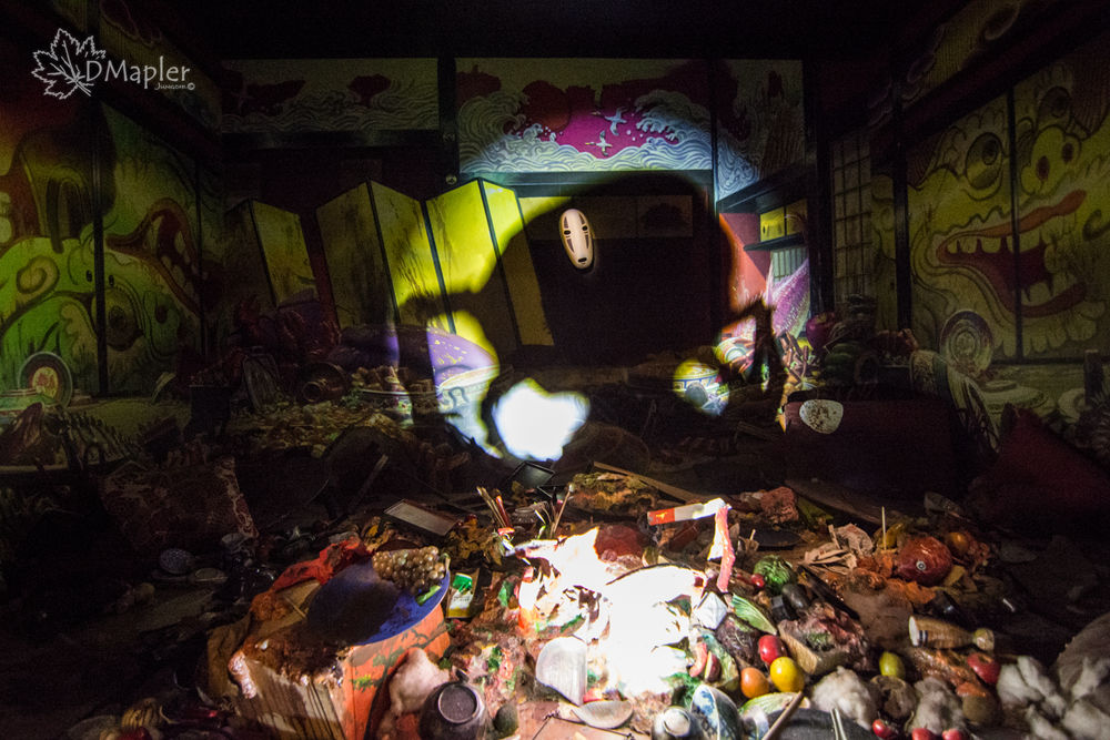 這幕無臉男搭乘火車離去的畫面,是這次展覽最多人排隊的一個,幸好現場有工作人員幫忙安排路徑與拍照,才能舒緩整個排隊人潮,當然這一幕一定要來拍一下囉。