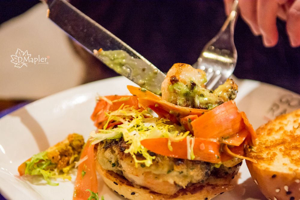 麵包烤至軟硬適中,裡頭有滿滿的龍蝦與蝦肉,肉質非常有彈性,搭配醃製過的蔬菜與醬汁,非常好吃。