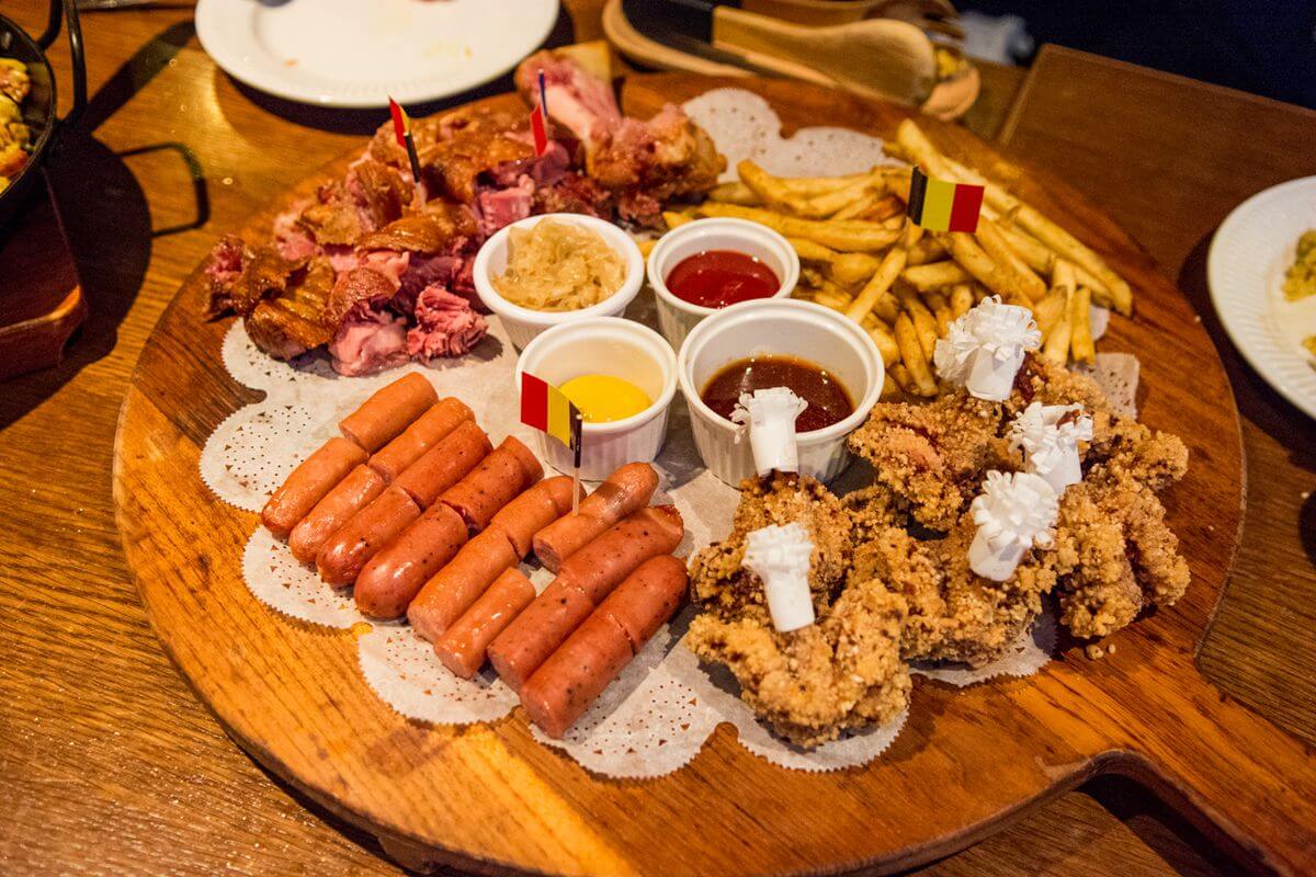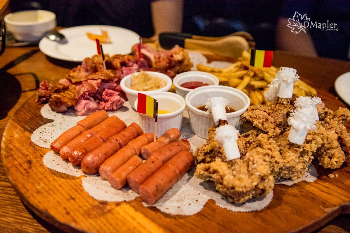 10|招牌特色菜 金色三麥超值大拼盤 1180$,內含德國豬腳、德國香腸、椒麻雞、薯條!