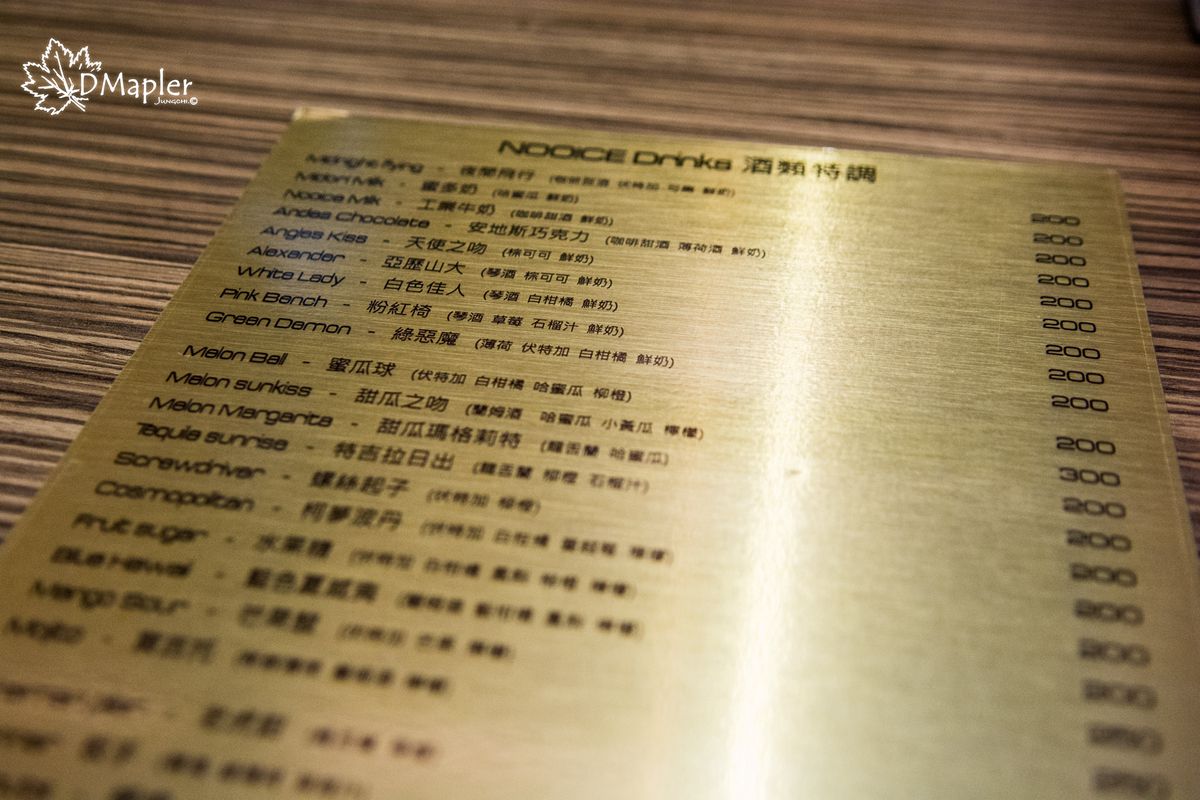 在飲品方面,NOOICE有提供酒類、啤酒、與無酒精飲品給客人選擇,這次小編就是喝無酒精飲品。