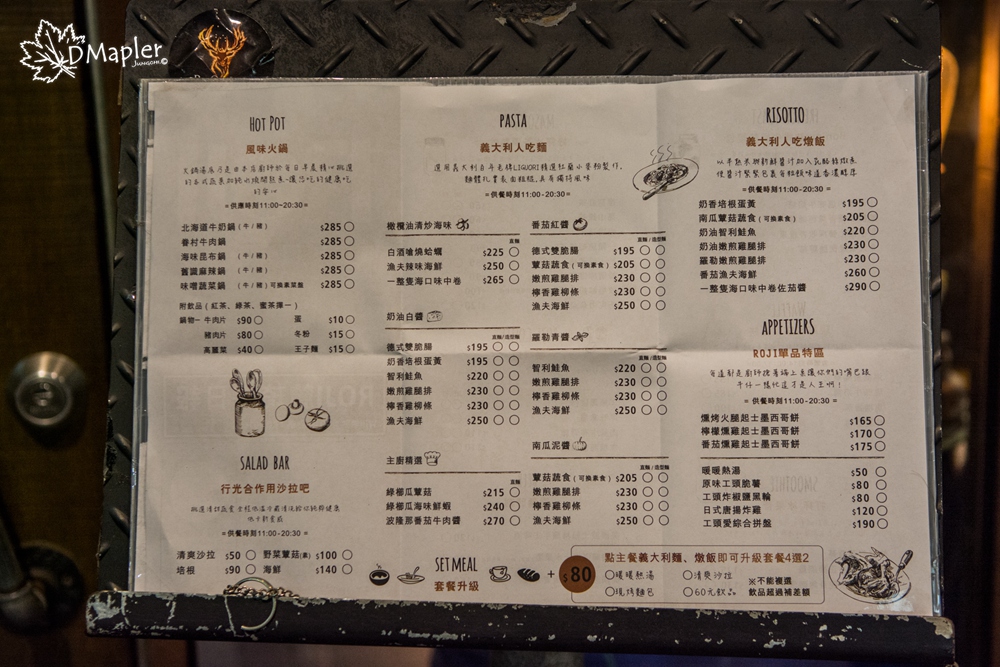 這天與公司同事相約要來聚餐吃飯,特地選了這家ROJI CAFE 麓琦咖啡道館,原來這家店就在小編租屋附近,就在文化中心房的巷口,才到門口就可以看到愛因斯坦與你相望,原來這是一間充滿物理衝擊的餐廳阿,店內有著多種樣式的餐點火鍋、沙拉、義大利麵、燉飯還有著咖啡飲品,挺適合來這邊聚聚聊天。