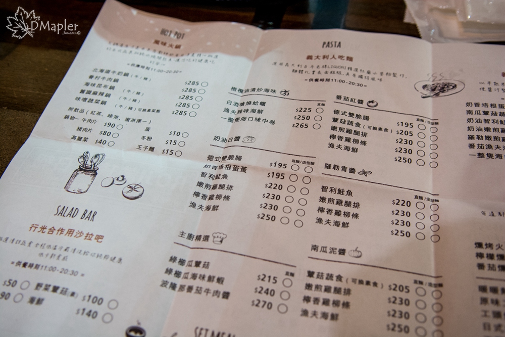 03|店內有火鍋、沙拉、義大利麵、燉飯,而小編當然選了義大利麵(因為拍照好看哈)