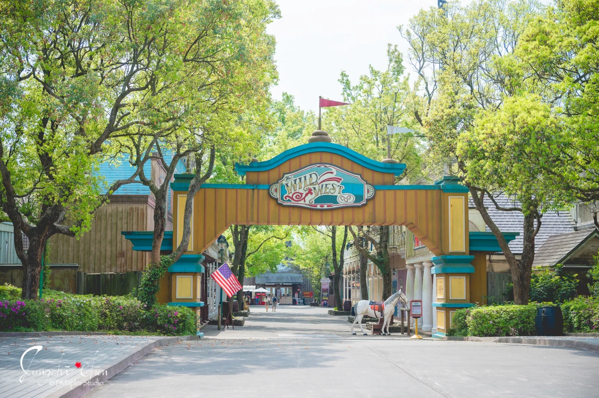 在美國大西部有「大馬靴」、「採礦車」、「大峽谷急流泛舟」、「笑傲飛鷹」、「西部瘋狂列車」、「老油井」、「醉酒桶」、「摩天蓬車」與「決戰墓碑鎮VR」遊樂設施。在這邊有較多的主題餐廳可以選擇「漢堡店」、「Honey廚房」與「牛排館」,其中牛排館是假日限定預約制的,有精彩的歌舞秀演出。在這邊還有每天只有一場的「探索秘境叢林」,講解鳥禽習性、傳遞環境保護及動物保育的正確知識,非常值得參加。